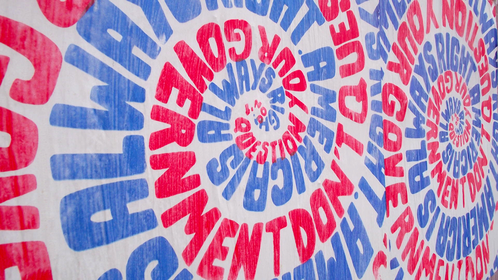 Inspired by the words of my media crit teacher in college, I set out to make a piece of propaganda that reflects the feelings of many individuals when it comes to the government. Looking at 1970s lettering, Dr. Seuss, and vintage propaganda posters for inspiration, the poster was hand drawn then silkscreened in vibrant red and blue colors in a hypnotic swirl.