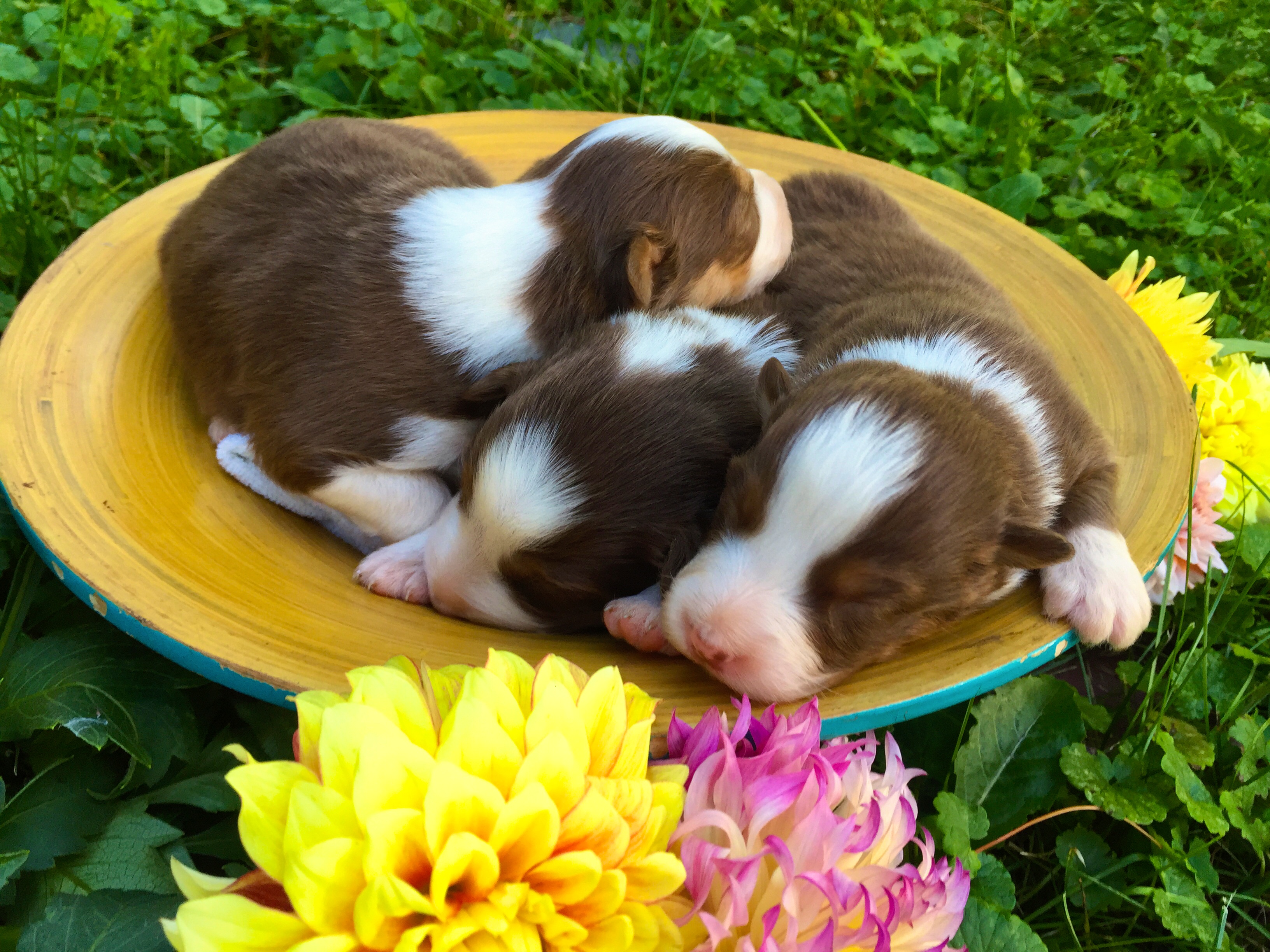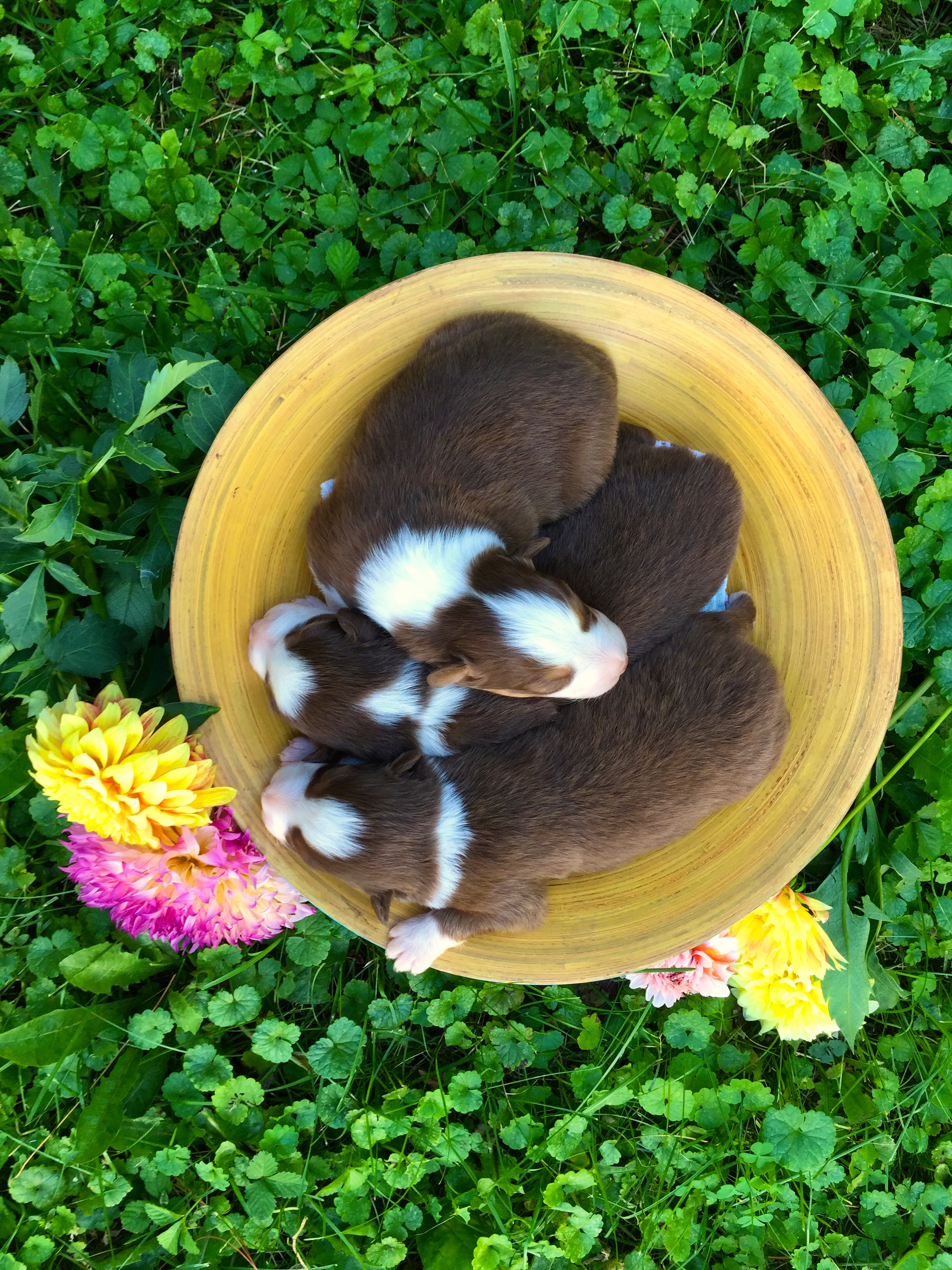 Seraphim Australian Shepherds was looking for a creative way to announce the birth of their first liter puppies. Standing in their beautiful garden, I was inspired by all the lovely greenery & fresh flowers around us. We gently laid the puppies in the warm sunshine & let their cuteness lead the lens.